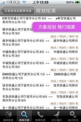 2、方案规划,只要输入起始地、目的地和货物重量,自动列出所有本地的快递运输解决方案,同时自动计算运费、到货时间,是否支持到付等提供您参考。