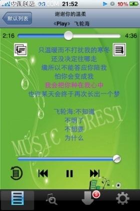 同时,该软件还兼容播放iPod里面的音乐,晃动换曲,清晰的音乐播放列表,支持三种语言,以及定时关闭软件的人性化功能。
