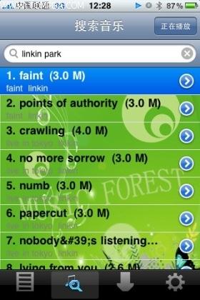音乐森林是一款集本地音乐管理和网络音乐搜索、下载、试听功能为一体的手机音乐应用软件。支持后台播放功能,并且支持多种播放模式:单曲循环,列表循环,随机播放等。同时还可以网络搜歌,在线收听等功能。是一款不错的手机音乐软件。