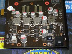 铭鑫视界风GTS450U -1GBD5 中国玩家版采用了四相供电设计(核心3相,显存1相),使用了意法半导体产的超薄铁素体电感、全固态电容、LFPAK封装“八爪鱼”MOSFET,寿命长,低温特性极为优秀。