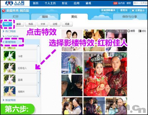 第六步:为了让图片更具美感,点击“特效”,选择“影楼特效”里的“红粉佳人”。