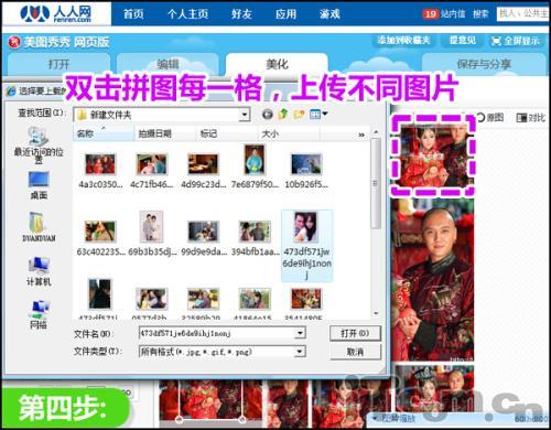 第四步:然后双击拼图模板里的每一小格,替换成你想要的其他图片上传显示。