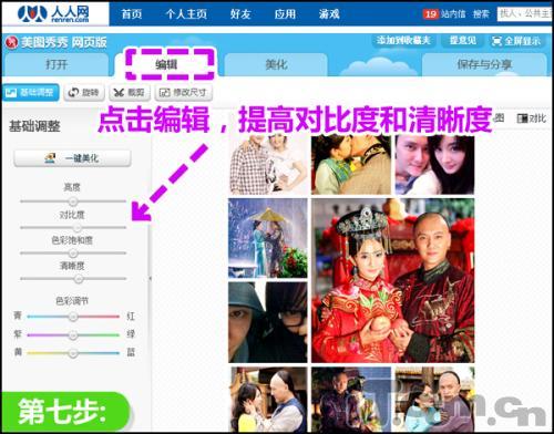 第七步:还可以在“编辑”菜单下,微调提高图片的对比度和清晰度。