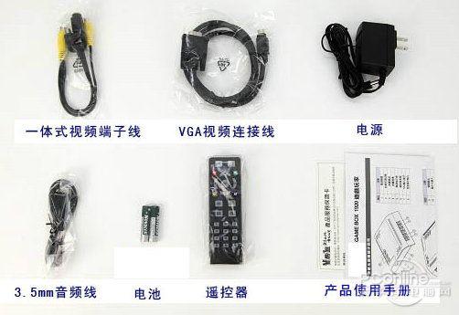 GM BOX 1080P所有配件如下,一体式视频端子线用来连接AV/S-video端子和声音输入;VGA视频连接线用来串接电脑主机,可让GM BOX 1080P和电脑主机共用一台显示器切换。
