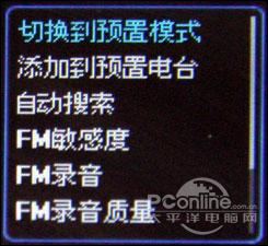除此之外,三星VP2也提供了FM收音功能,基本功能和普通MP3的FM类似,需要插入耳机作为天线才能接收FM信号。