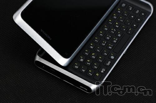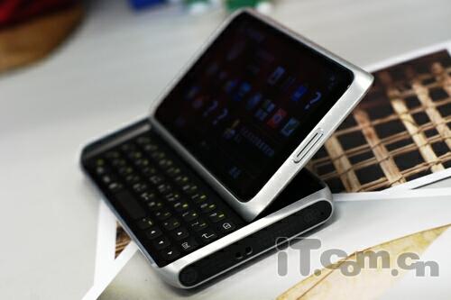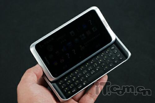 由于滑盖结构的调整,用户在开启E7-00滑盖时需要掌握技巧,评测人员身边的朋友第一次玩E7-00往往会尝试直接向左滑开其全键盘,这种操作无疑是较为吃力和危险的,弄不好用力过度把整部手机都滑出掌心就损失惨重了。正确的方法是横卧手机,拇指向屏幕下沿用力便能顺畅地滑开上盖,只要掌握了方法还是能很快习惯的。