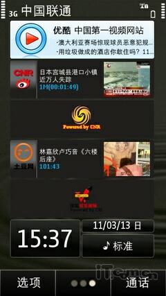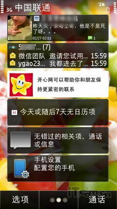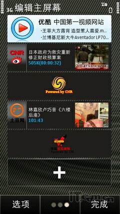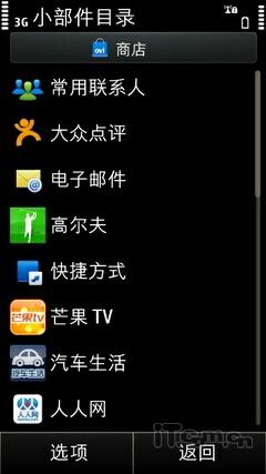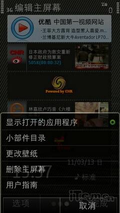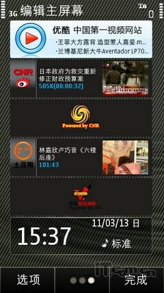 Symbian^3系统的待机界面编辑非常方便,在桌面上用户长按屏幕同样也会弹出小工具条,用户可以随意添加。