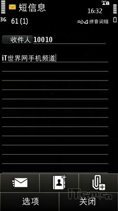 同样在短信功能上,我们看到诺基亚的这款E7-00手机也没有太大的变化,只是多了一个会话功能,其实就是将短信以聊天记录的形式展现,并不是太新鲜的设计,而输入方面配备有QWERTY全键盘的E7-00堪称是当前具备最全面输入方式选择的诺基亚手机,使用全键盘可实现拼音词组、笔画词组、英文、数字、字符的输入,基于Symbian^3平台,用户还可选择全屏手写、框式手写、字母数字键盘(虚拟)进行触屏输入。