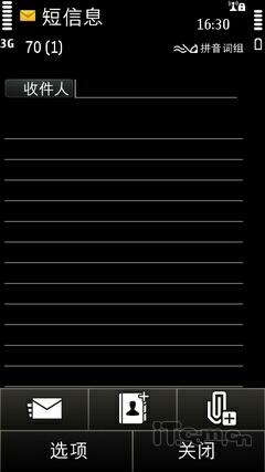 对于不熟悉拼音输入法的朋友来说,手写输入往往是较好的选择,E7-00支持全屏手写以及框式手写,但要补充说明的是这两种输入方式连同上面说到的虚拟键盘输入法是不 能在全键盘开启的状态下使用的。找到"触摸输入"的菜单,用户可设定其书写速度、笔画粗细、文字颜色等细节,倘若在编辑语言中选择English(英文),菜单中还会增加"手 写训练"一项,让用户可以自行摸索系统识别英文等字符的喜好,此外还可在此菜单中创建特殊的手写指令,系统成功记录之后下次只需书写这个指令便能快速输入预先设定好的文字内容,颇显人性化。