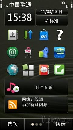 因为诺基亚E7-00手机采用了Symbian^3系统,所以我们并不陌生,待机界面依旧是三分屏设计,震动反馈的触控感优秀,不会有顿挫的现象发生;另外Symbian^3的待机界面延续了S60的风格,熟悉诺基亚的用户可以很轻松的上手,并且横屏的时候待机界面也会自动跳转,这点比Android和iOS系统都要好!