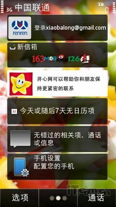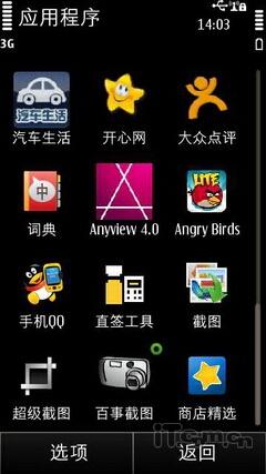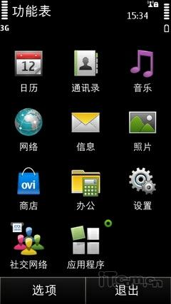 诺基亚E7-00系统的主菜单采用了诺基亚拿手的12宫格设计,而且排列方式依旧延续了Symbian的风格。