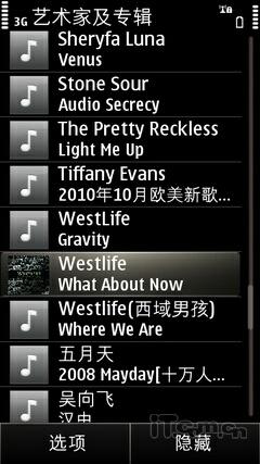 音乐方便,新的播放器界面更加动感,滑动式唱片封面更适合手触操作,而EQ调节器让用户可以根据自己口味选择,Ovi音乐和"乐随享"还可以带给用户海量、正版的音乐体验。