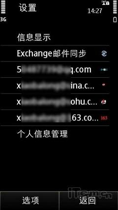 图为:诺基亚E7手机菜单