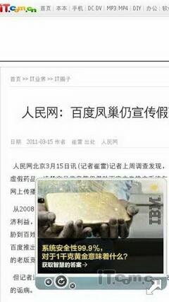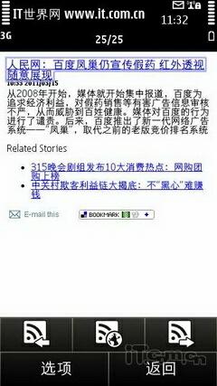实际的浏览中,E7-00的速度还是很不错的,只是在内容稍多的网页会出现卡顿现象,而支持多点触控的设计方便用户浏览文字和图片!