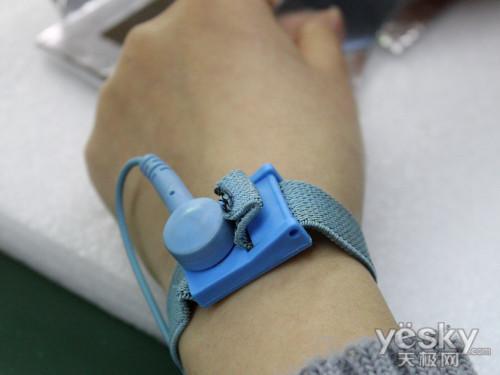 眼尖的网友们,一定注意到了MM的左手戴着一个蓝色的东东,这个其实是防静电环,作用是防止MM装配时候身上的静电积累到一定程度造成GPS主板上芯片被电压击毁的。极极发现传配线上所有员工都带有这种防静电环,措施还是挺到位的。