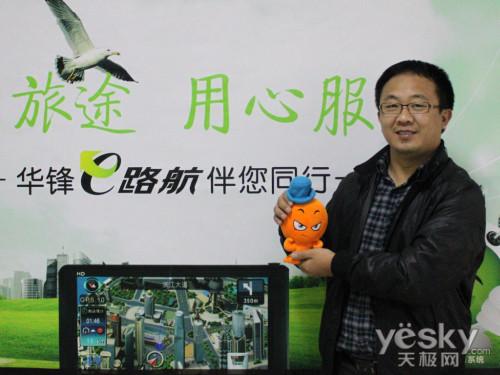 在工厂的门口,华锋E路航董事长兼总经理孙金华热烈欢迎接待天极网小宠极极!