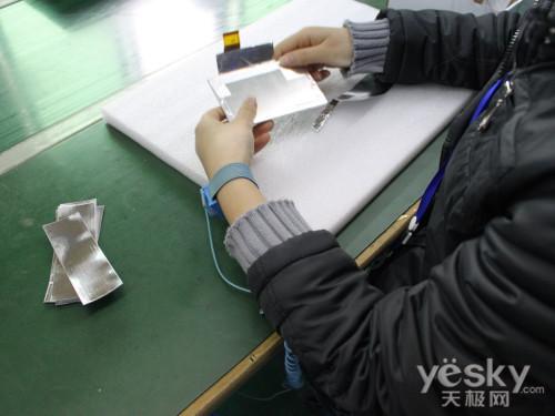 一般来说,为了防止内部各个电子部件产生的电磁波相互干扰,大品牌、做工优良的GPS导航仪都会在机身内部铺设EMI屏蔽贴纸,这样做的好处是能够大大提升GPS导航仪长期工作的稳定性,而且对GPS导航仪的搜星表现、CMMB晴彩电视信号接受能力、屏幕色彩表现等等都会有较大提升!极极这次就在生产线MM的手下,发现了一张传说中的EMI屏蔽贴纸!