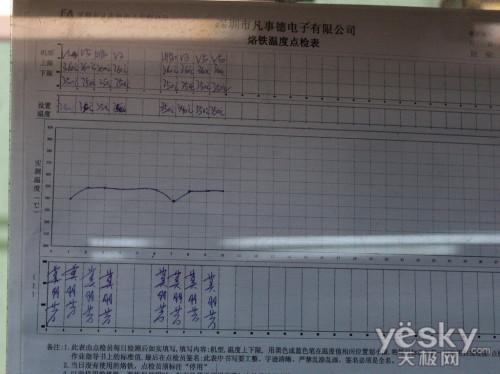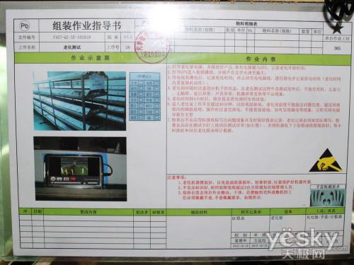 首先每台华锋E路航GPS导航仪,从生产线开始装配起,后背上就贴上了一张“出生纸”,上面详细列明了其需要通过的14项质量检验过程。