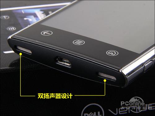 戴尔Venue为了更好地改善外放效果,在机身底部设计了两个扬声器,形成一个立体声的播放体系。机身底部的中间是一个MicorUSB接口。