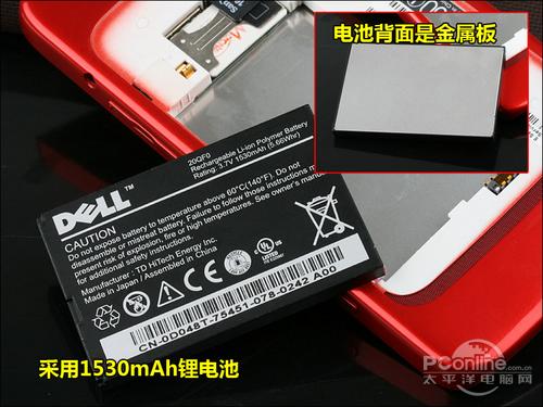 比较有趣的是,电池的背面是一块金属板,实际的作用并不明确。虽然戴尔Streak有很庞大的机身,但是电池方面并没有为此增大多少,只是采用了1530mAh锂电池。从实际应用来看,如果连续使用的话,几个小时便会电量告急,如果使用并不太频繁的话,一天一充是少不了的。
