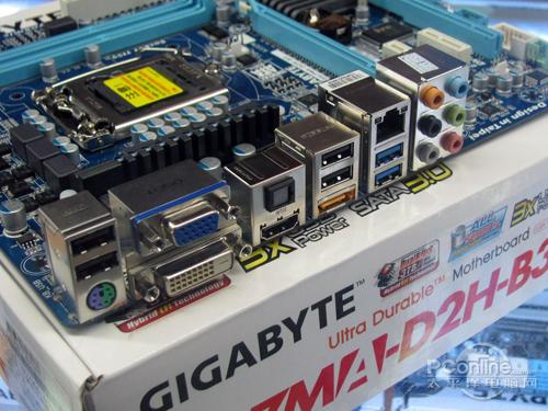 技嘉GA-H67MA-D2H-B3主板提供了HDMI/DVI/VGA组合的视频输出接口,以及1个PS/2键鼠、USB2.0/USB3.0接口、光纤音频接口、IEEE1394、声/网卡接口。