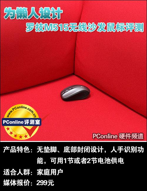 【PConline 评测】躺在床上和沙发上玩电脑,是非常舒服的,也是不少懒人的最爱,但是普通鼠标在沙发和床上使用总是有些不便,例如鼠标垫脚挂到床单、光孔被堵住、松手之后鼠标会往边上滑等情况,未免有些美中不足。今天为大家带来的罗技 M515鼠标,就是专门针对懒人人准备的沙发鼠标,这款鼠标使用了底部密封、人手感应等设计,为这类用户带来最好的享受。