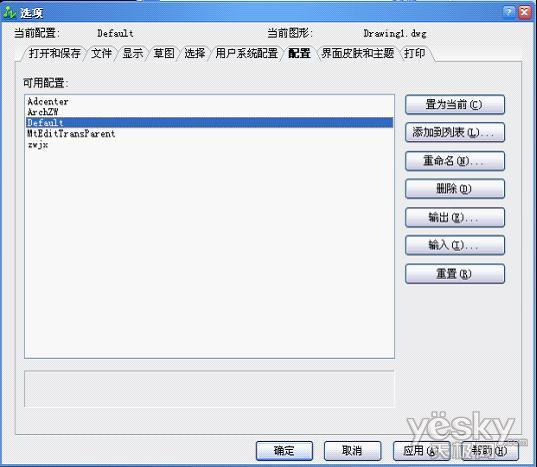 在列表中选择某个配置后,按“置为当前”可将软件的配置设置成所选。按“重置”命令,软件将回复到初始安装时的默认状态。