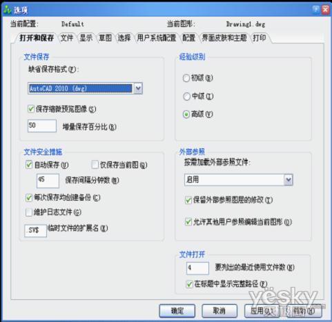 这里还有一个需要注意的是自动保存的时间我们还是尽量不要设置的太短,否则的话特别是在多文档操作时有可能会出现绘图时经常会有图纸进行自动保 存而导致软件反应迟缓甚至死机的现象。在中望CAD2011中还有个较好的设置就是我们还可以选择“仅保存当前图”。这样的话我们可以保证软件更畅顺的使 用。