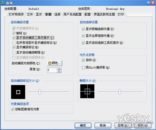 4)在“草图”标签页中,我们设置一些自动捕捉、追踪和靶框大小等等的参数。