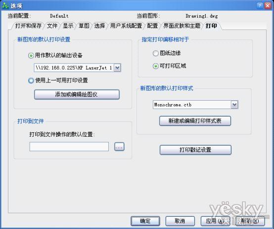 9)在“打印”标签页中我们可以设置一些打印的默认设置和打印戳记的一些设置等。