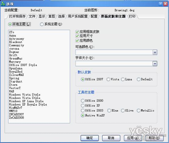 8)在“界面皮肤和主题”标签页中,我们可以自由的设置自己喜欢的中望CAD界面皮肤和主题,这是中望CAD所特有的个性化的功能之一。