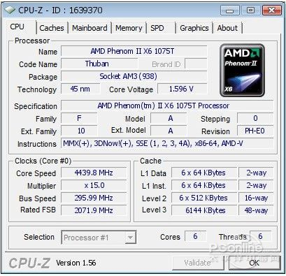 1075T的定位比较尴尬,售价比自己的顶头上司仅便宜70元,却比主频相差不大的手下1055T,贵出130元,首先在价格上就已经很黏了。另外,经过AMD的boost加速,它能运行在3.5GHz的频率下,和商家承诺的“包超3.5GHz”一致,那么,你懂的,不说了!
