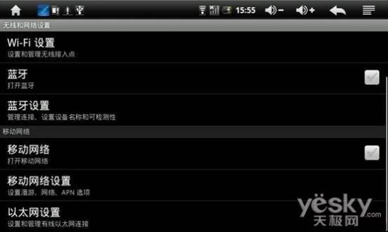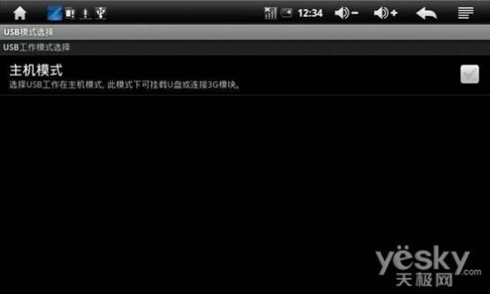 进入BM-800的设置菜单里的USB模式选择界面下,将主机模式里的小方框打勾,此时RJ45的指示灯会亮起。然后到设置菜单里的无线和网络设置的界面下找到“以太网设置”,单击进入。