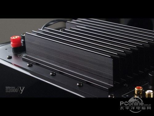 随着原材料的成倍上涨,以金属铝为材料的散热器已经成为影响整体售价的元件之一。S2000V没有因此吝啬成本,采用了一只大型散热器,确保大功率输出时,功放安全无忧。