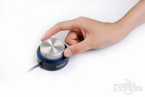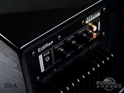 为了解决高档立体声音箱调音量极不方便的毛病,Edifier为S2000V设计了一个新型的伺服线控器。这款线控器采用金属铝合金削切而成,旋钮部分被设计得很大,旋钮的直径更大时,旋转起来会更加轻松,这也是许多发烧功放喜欢使用大旋钮的原因。这款线控器的手感非常出色,质、量、感均十分优秀。