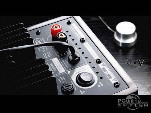 与S2000的独立功放不同,S2000V采用的是内置式功放模块。采用隔离式进线设计,信号输入与电源输入严格隔离,这样不会让强电(电源输入)干扰到信号输入。S2000V仅提供一组模拟输入,接口形式为RCA(莲花头)输入方式。为了迎合大众口味,S2000V保留了音调控制部分。