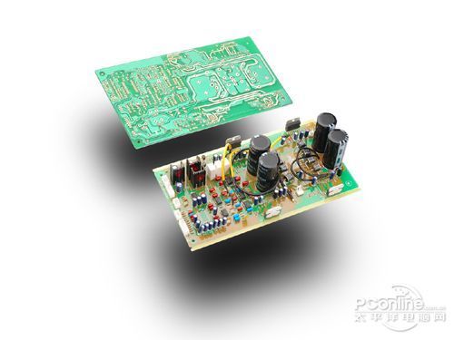 为了给S2.1提供足够强悍的动力,功放采用双TDA7296和一颗TDA7294大功率功放芯片。功放电路采用模块化设计,采用强化式电源设计,提供了不小于27000微法的滤波电容,同时配备了大功率环形变压器。这些,都远远高于一般的设计。