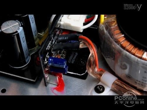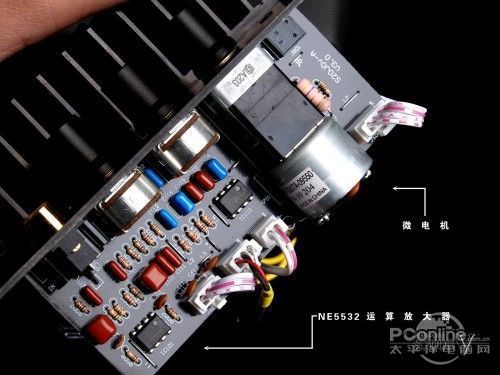 和S2000一样,S2000V使用了一只微型电动马达与音量电位器构成微马达音量控制器。遥控器调控音量在多媒体音箱当中已经不算什么新鲜事情,大部分依赖纯电子解决方案,多年实践证明,纯电子解决方案存在一些小的问题,作为一些中端应用尚可,但已经不适用于S2000。S2000采用高档功放中常见的微控马达,遥控器发出指令,然后由马达旋转电位器达到控制音量的目的,这种应用首次出现在多媒体音箱当中。S2000V也采用类似原理来实现音量调节,只不过遥控器换成了线控器。