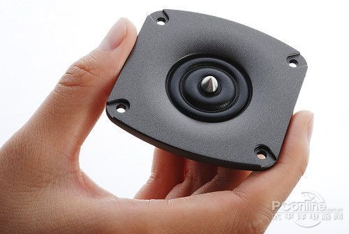 基于这种膜片,漫步者精心设计了此款高音扬声器,它在外观上就很与众不同,波浪型的振膜、中间的纯铝导向锥……在多媒体音箱系统中都是难得一见的。它采用 19MM直径的膜片,喷涂漫步者专利涂层,改善振膜的声学特性。大量的改进远不止这些,这枚扬声器的磁隙中填充了磁液的来优化性能。为了保持小体积高性能,这款扬声器不惜成本的使用了钕铁硼磁体。有着高成本的投入以及不厌其烦的精心校声,这枚小巧的高音扬声器让人耳边一亮。