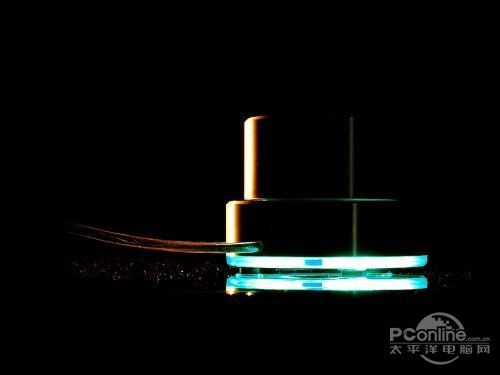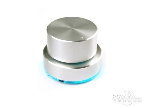 采用了一支圆形线控器,这只线控器采用了配重设计,增加了线控器自重,底部也安装了防滑脚垫,这样的设计不会象一些塑料线控器一样轻飘飘的,调节时满桌子乱窜。这款线控器完全可以实现单手调控。旋钮采用大直径设计,旋转时的手感远远优于一般的小拨轮。旋钮表面采用先进的电镀工艺和数控机床处理,让线控器闪现出一股金属特有的光泽。在线控器底座部分,设计有一组耳机输出,用户可以方便的换用耳机。还有一组高灵敏度的AUX输入,这个接口是为MP3用户量身定做的。当通电后,线控器会发出一圈蓝色光环,冷峻而迷人。