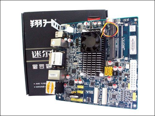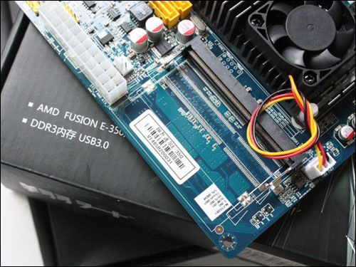 所以翔升将迷尔E350称之为“DX11超显主板”,可媲美独立显卡平台的一站式装机选择,集成了CPU与DX11显卡的主机平台,主板甚至采用数字PWM电路,以提供更加精准的电压控制,全固态电容以及昂贵的钽电容用料,尽管Fusion待机功耗最低号称仅5W,不过迷尔E350采用4cm小涡轮散热器,底部连接大片散热片,把Fusion处理器及重要芯片都覆盖住,保证散热的同时也保持了主板的超薄,给主板上了一个双重保险。