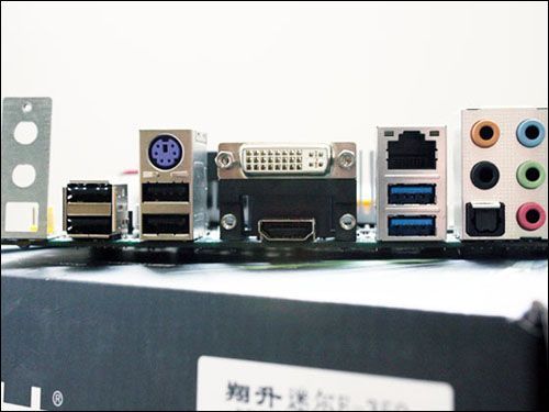接口方面并没有因为主板的尺寸而缩减,提供了2个USB3.0,8个USB2.0接口,I/O接口方面提供了1个PS2鼠标接口,DVI,HDMI,RJ45,6JACK以及光纤接口,可以提供完整的输出模式。