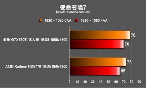 《使命召唤7》的测试中,影驰GTX 550Ti名人堂依然领先于HD5770。