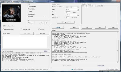 基于CryEngine II的《孤岛危机》是当年公认最变态的3D游戏,玩家们还戏称为“显卡危机”,可见其对显卡性能要求之高。我们采用的是Crysis游戏自带的Benchmark进行测试。