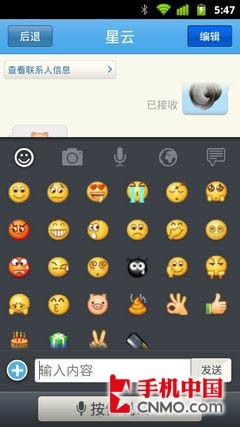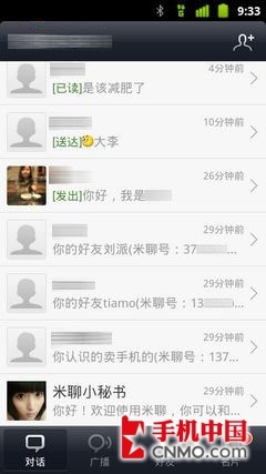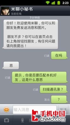 在扫描通讯录之后,如果你通讯录好友中有人也正在使用米聊的话,就会有提示能够加对方为好友,从过程上来说相对方便 一些,不用手动输入账号。米聊发送信息的方式包含语音、图片及文字,图片与文字显然已经威胁到了传统的短信与彩信,而语音聊天也很有可能会让消费者的传统 语音通话时长缩短,不过对于用户来说是非常实惠的。