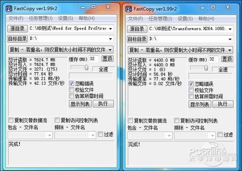 Fastcopy,是一个以优秀的文件复制工具,其复制速度比Windows自带的复制功能要快得多,因此该软件也被喻为最快的文件复制工具。我们用它 进行文件复制测试,毕竟复制操作是用户平时用得最多的写入操作之一,测试结果能较真实反应出磁盘在复制操作中的性能差距。