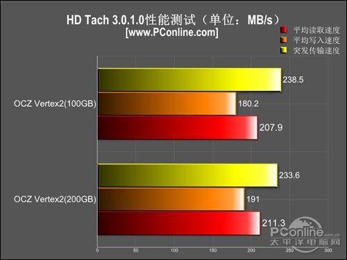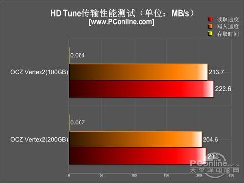 我们本次也拿这款OCZ Vertex 2 SATA II 2.5 SSD 100G固态硬盘与之前的OCZ Vertex 2 200G固态硬盘进行了详细的对比测试,测试项目分别是理论性能测试及实际应用的测试,所使用的测试软件分别为PCMark Vantage、ATTO Disk Benchmark、HD Tach 、HD Tune、CrystalDiskMark、AS SSD Benchmark以及Fastcopy 1.99。