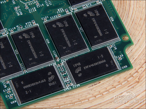 OCZ Vertex 2 SATA II 2.5 SSD 100G固态硬盘采用了16颗镁光MLC NAND闪存芯片,编号为“29F64G08CBAAA”,34nm工艺制造,单颗容量为8GB,构成128GB规格。不过由于SandForce引入了 RAISE容错技术(主要是为了在低质闪存上保证数据安全性,类似于硬盘的RAID 5阵列,这项技术对所有数据都采用冗余存储,支持ECC和CRC校验,保证当闪存部分区块失效后的数据安全性。)所以实际可用容量为93.16GB。