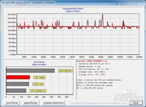 HD Tach是各种硬盘评测中常用的工具软件,其评测结果能较好地反应出磁盘性能,具有相当的权威性。软件自带一个硬盘性能资料库,方便用户与测试的磁盘作对比,从而可知所测的磁盘性能处于什么水平。