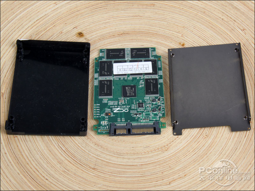 拆开固态硬盘外壳,我们可以看到OCZ Vertex 2 SATA II 2.5 SSD 100G固态硬盘整个布局显得较为整齐,颗粒间距良好,这样有利于更好的保证内部元件散热效果。